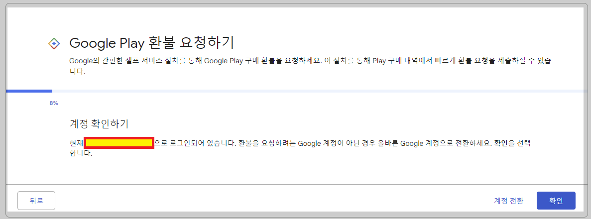 구글플레이에 접속하여 환불을 원하는 계정으로 로그인합니다.