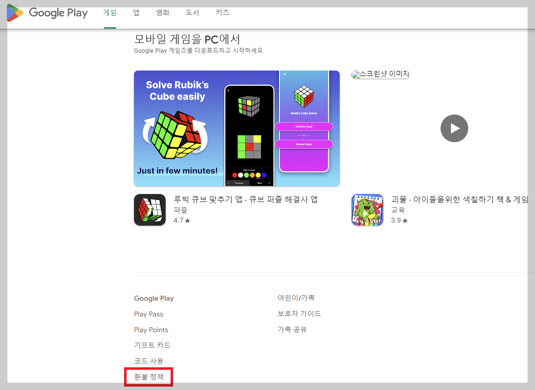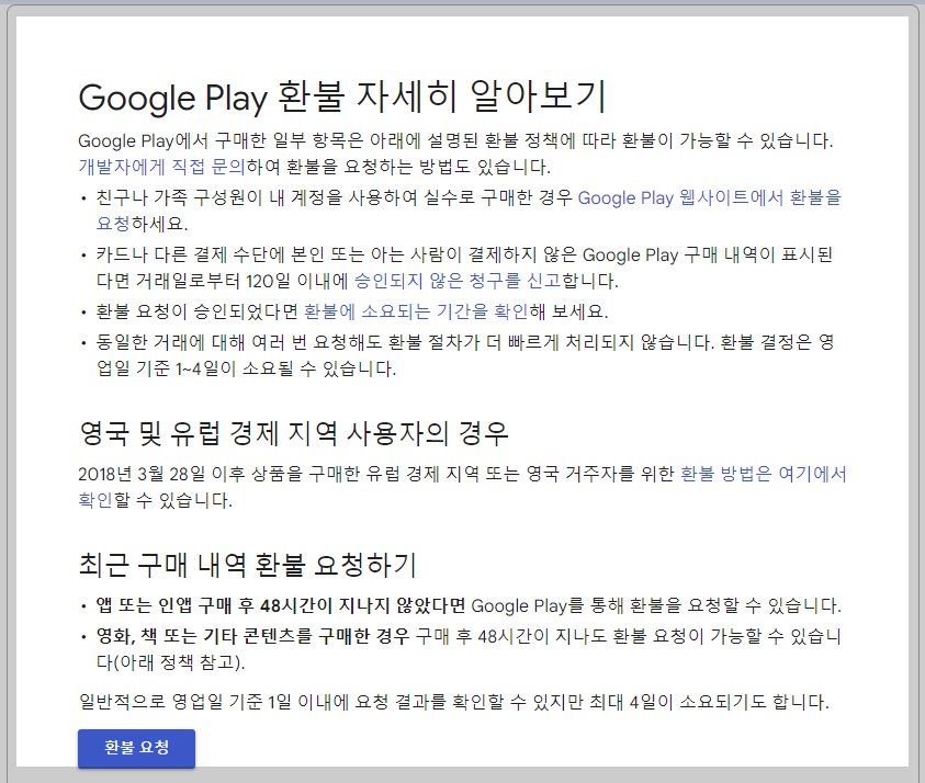 제 경우에는 일단 구글플레이에서 환불 메뉴를 찾는것도 쉽지가 않았습니다.
